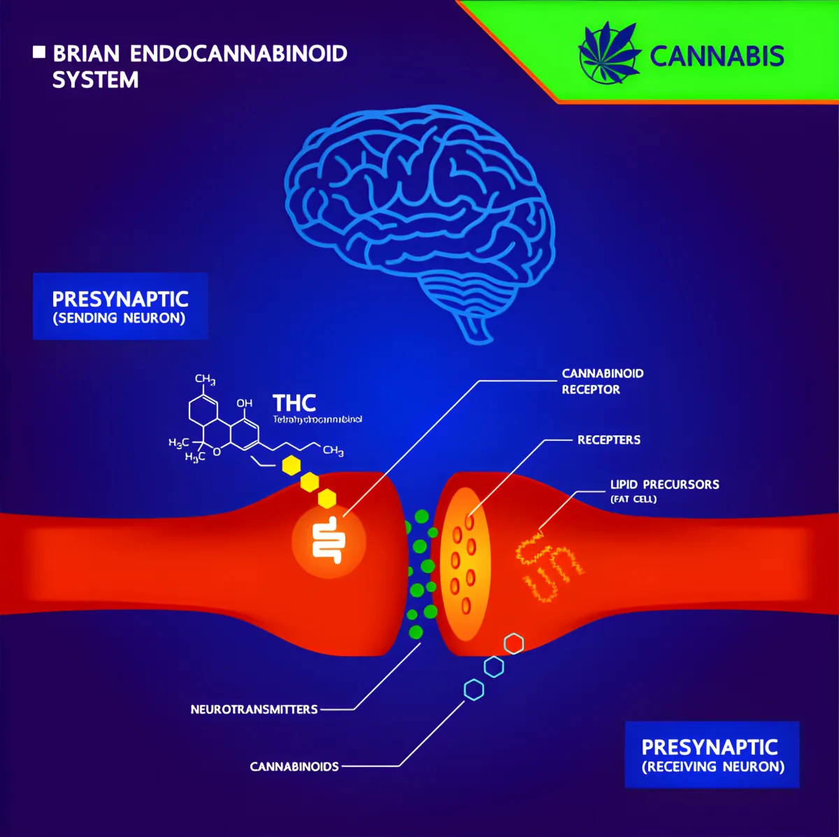 Cannabinoids yang berasal dari tumbuhan, seperti THC dan CBD dalam cannabis, dikenali sebagai phytocannabinoids. Badan kita juga menghasilkan cannabinoids sendiri, dipanggil endocannabinoids, yang merupakan enzim larut lemak. Enzim ini berhubung dengan dua reseptor utama, iaitu CB1 dan CB2.
